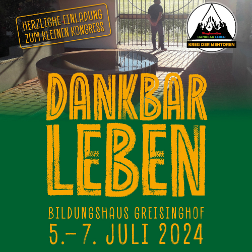Dankbar leben - Ein kleiner Kongress 05.-07. Juli im Bildungshaus Greisinghof mehr: Dankbar leben - Ein kleiner Kongress