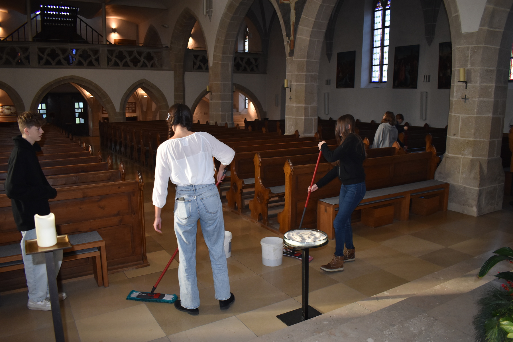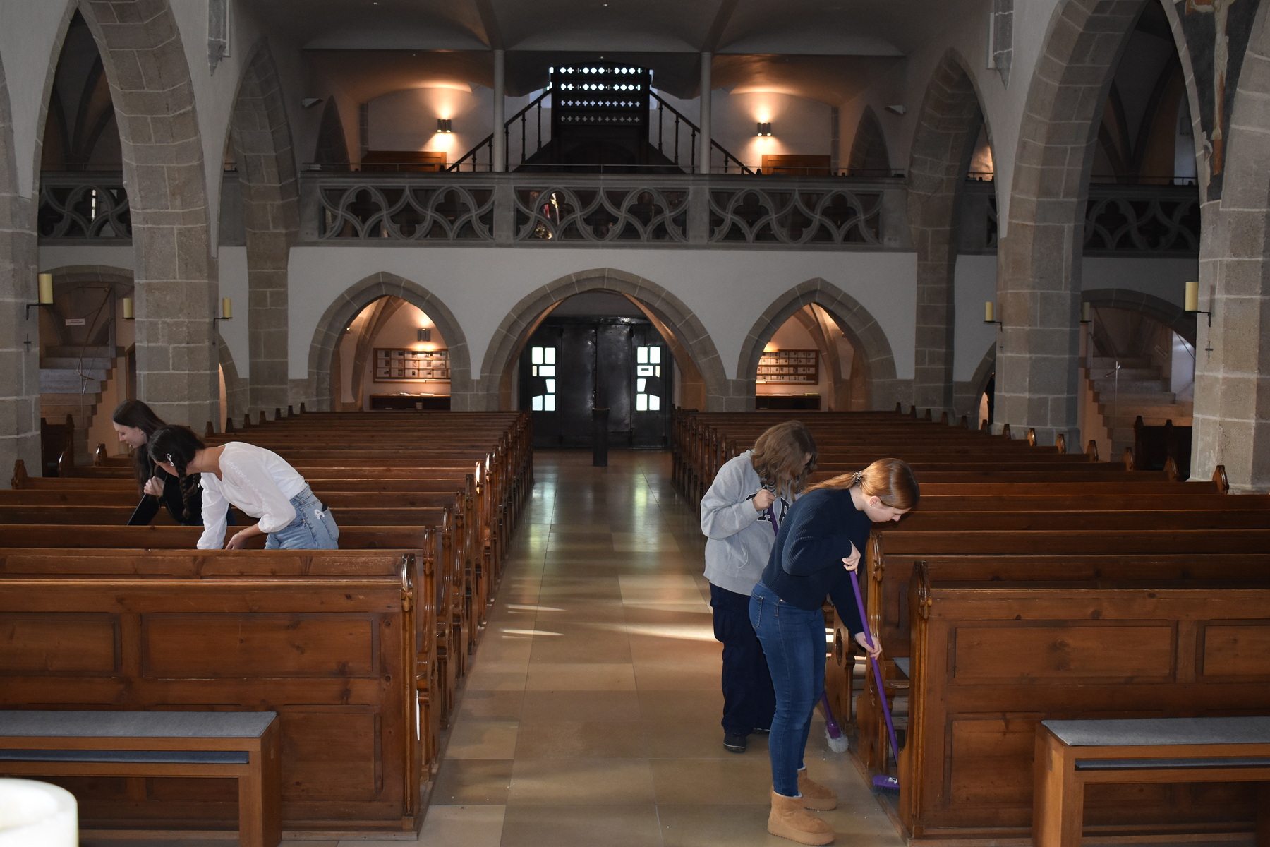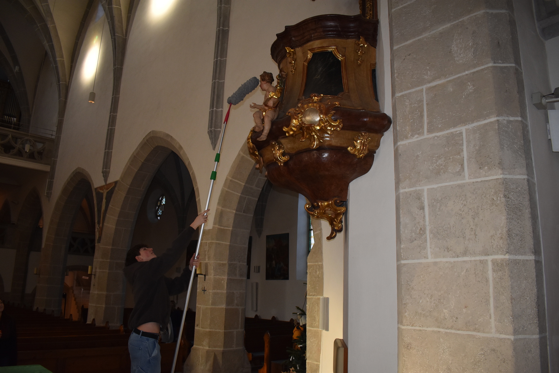 Abstauben, Kehren, Wischen und Staubsaugen! Die Mini - AK hat auch dieses Jahr wieder im Rekordtempo die Kirche auf Vordermann gebracht. Ein großes Danke gilt auch unseren Mesner:innen, die mit Besen, Wischer, Kuchen und Faschingskrafpen die Minis so erstklassig unterstützt haben.