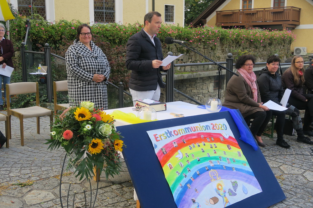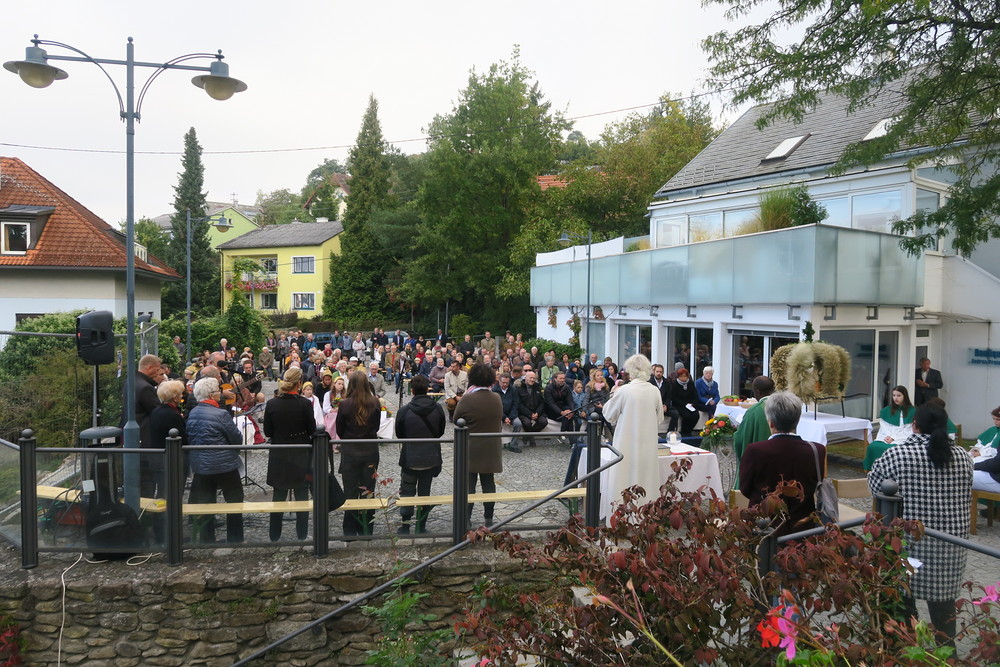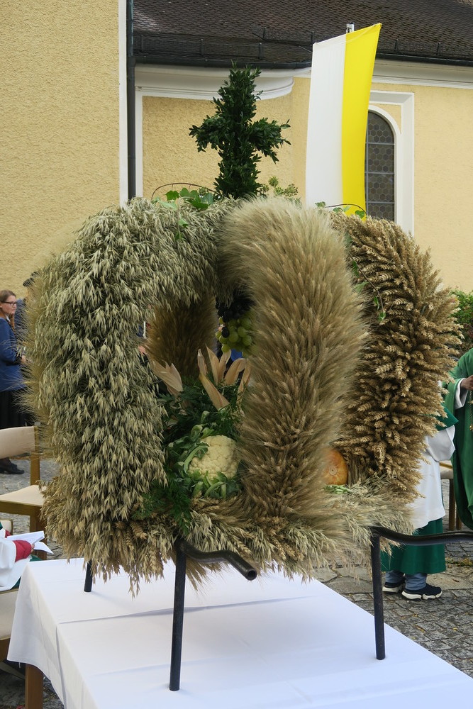 Um 9.15 Uhr fand die Segnung der Erntegaben und anschließend der Festgottesdienst auf dem Dorfplatz statt.