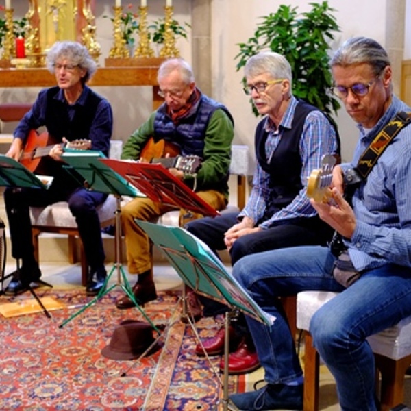 Eine besondere musikalische Gestaltung der Gottesdienste erlebten die Besucherinnen und Besucher am Sonntag, 27. Oktober 2019. Vier Musiker brachten die von einem Mitglied des Ensembles „maunaleit“ selbst getextete und vertonte „huat-mess“ zur Aufführung.