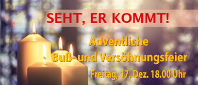 Wir laden herzlich ein zu einer adventlichen Buß- und Versöhnungsfeier. Damit wir die Ankunft Jesu mit Freude erwarten können, möchten wir uns innerlich darauf vorbereiten. Bei der Bußandacht gibt es anschließend auch die Möglichkeit zur Einzelbeichte.