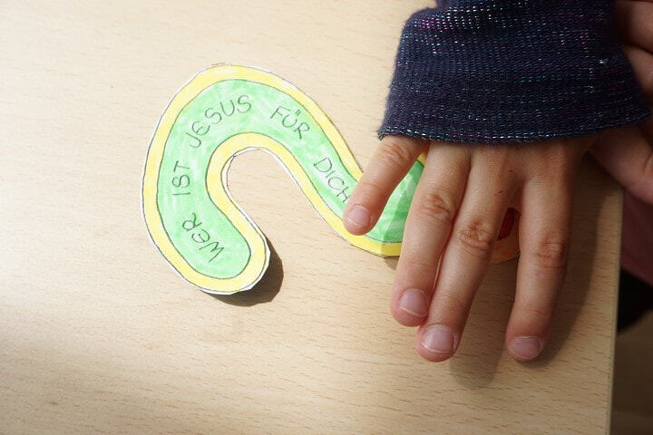 Die Kinder der ersten Klasse erzählen, was Jesus alles getan hat: